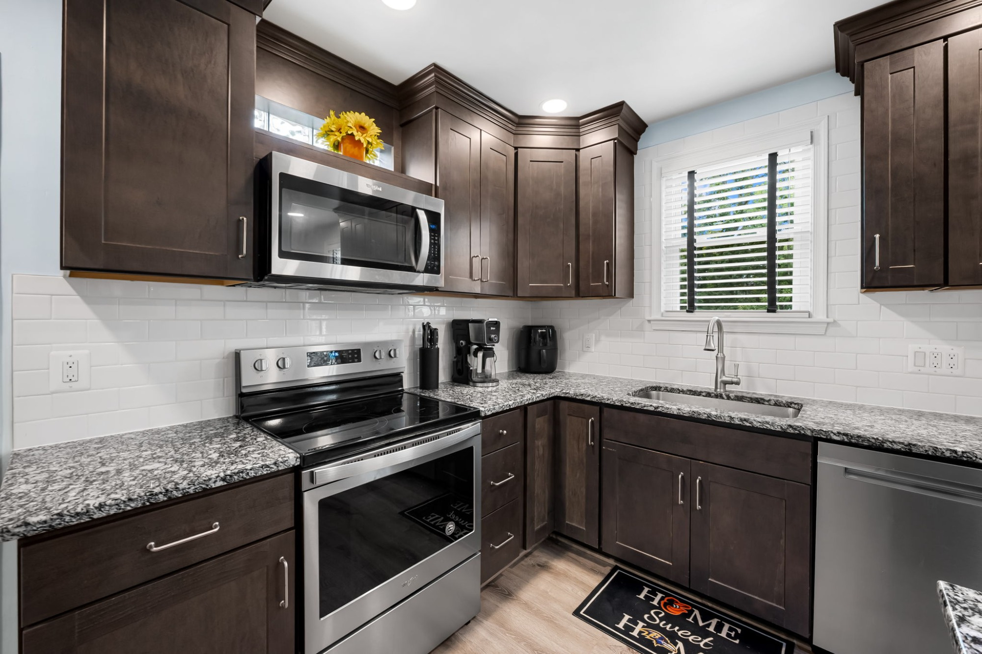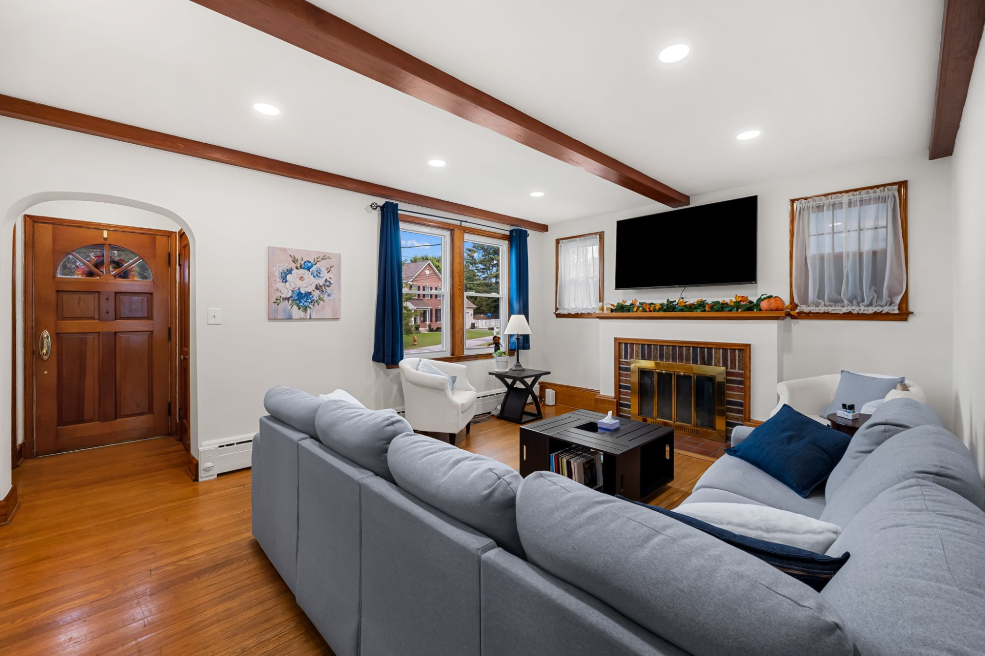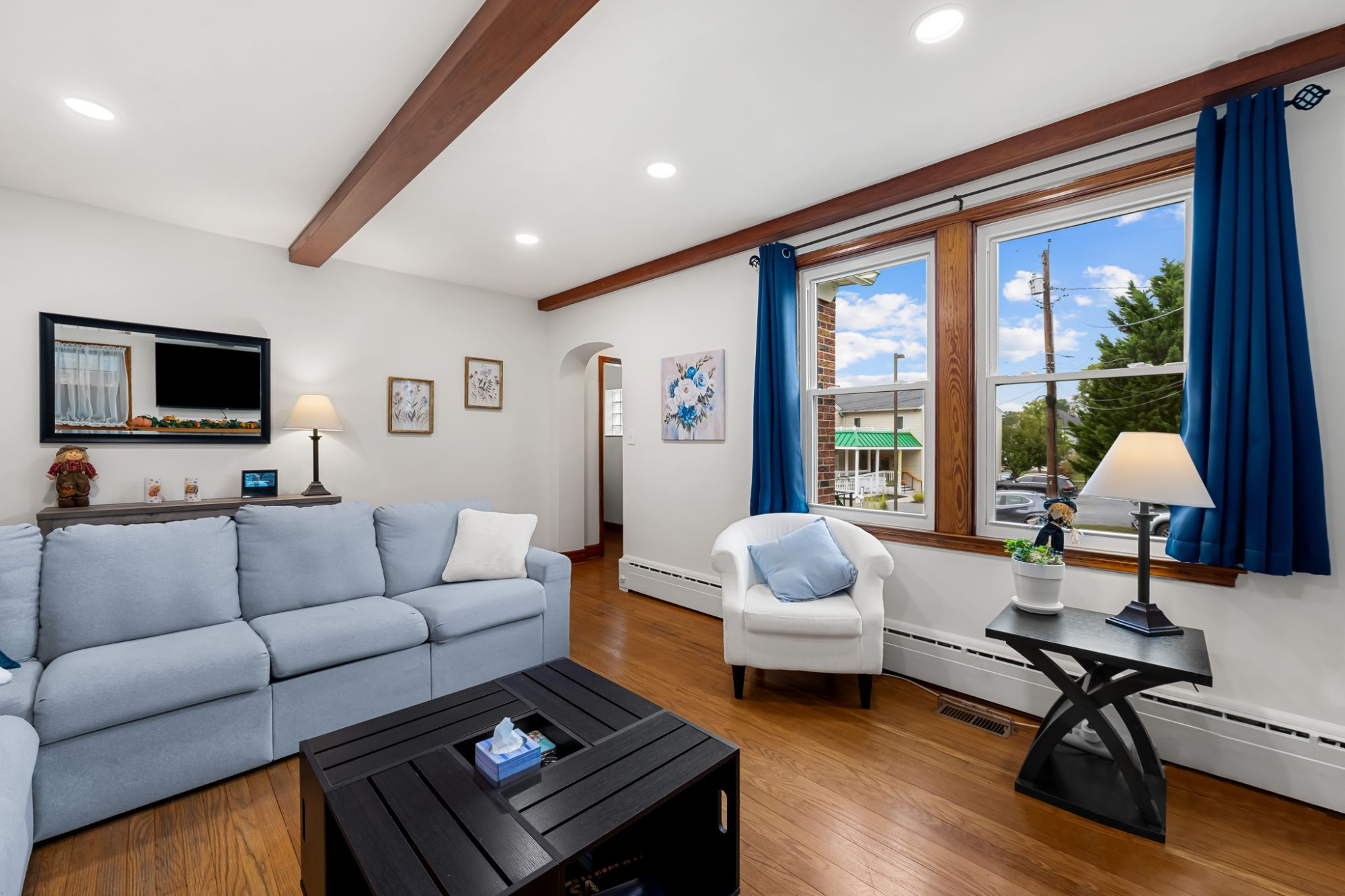 Tucked away in the heart of Nottingham, 4201 Halbert Road offers the perfect blend of privacy, space, and charm. This beautifully maintained Cape Cod boasts over 2,900 square feet of finished living space across three levels, with four spacious bedrooms and three full baths. The recently renovated kitchen is a true centerpiece—featuring upgraded countertops, recessed lighting, and a built-in desk ideal for remote work or homework. It opens seamlessly into a ceramic-tiled dining room and out to a sprawling deck, perfect for entertaining or enjoying quiet evenings overlooking the landscaped, partially fenced yard. The main level includes a cozy living room with fireplace, two bedrooms including the primary suite, and a full bath. Upstairs, discover a bright family room, two additional bedrooms, and another full bath—ideal for guests or growing families. The fully finished lower level adds even more versatility with a second family room, laundry, storage, and a third full bath. With central air, hardwood floors, and thoughtful updates throughout—including newer roof and windows—this home is move-in ready. The oversized two-car garage with inside access and concrete driveway offers parking for six. Located in the Perry Hall school district and just minutes from Belair Road, this property combines suburban tranquility with everyday convenience. Whether you're hosting holidays, playing in the expansive yard, or relaxing on the deck, 4201 Halbert is a place to make lasting memories. Welcome home.